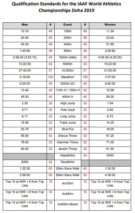 Ανοιχτός είναι ο δρόμος για μια αξιόλογη ελληνική ομάδα σε αριθμό, αλλά και σε καλό επίπεδο, στο Παγκόσμιο Πρωτάθλημα στίβου του 2019, που θα γίνει στην Ντόχα στα τέλη Σεπτέμβρη.