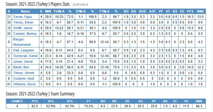 Πρώτος σκόρερ της ομάδας ήταν ο γνωστός μας από τη θητεία του σε Περιστέρι και Παναθηναϊκό, Μπεν Μπέντιλ με 17 πόντους. Τόσους είχε και ο έμπειρος Ογκούζ Σαβάς ενώ ακόμα δύο παλιοί γνώριμοι είχαν συμμετοχή.