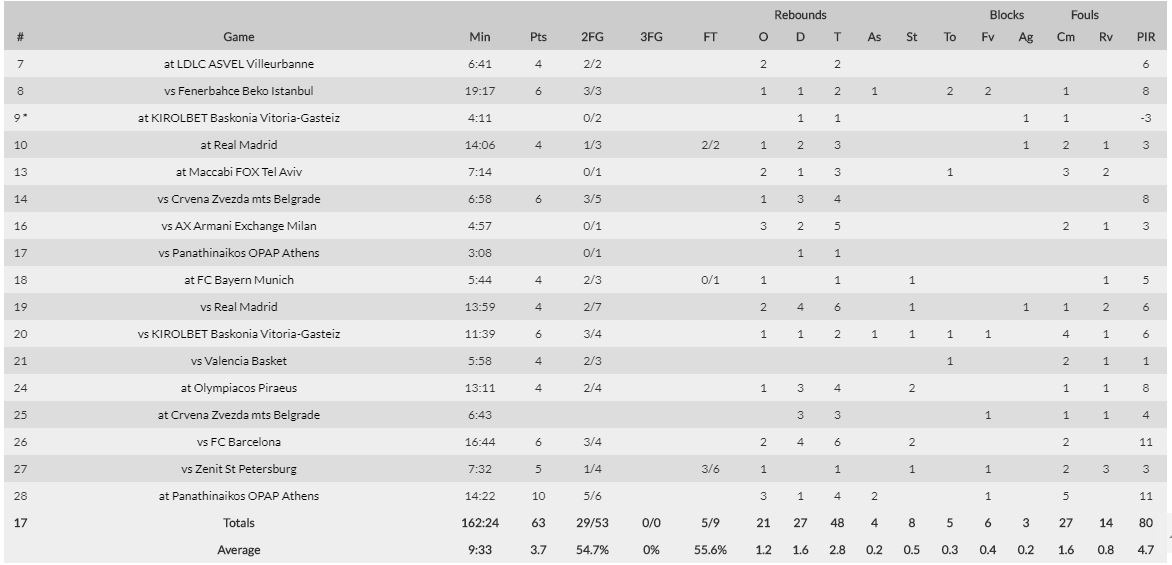 Με τα παραπάνω νούμερα (3,7 πόντοι και 2,8 ριμπάουντ σε 9’33” λεπτά συμμετοχής) ασφαλώς δεν δικαιολογείς 6 εκατομμύρια δολάρια για δύο χρόνια. Και γι’ αυτό η συνεργασία του με την ΤΣΣΚΑ έλαβε τέλος.