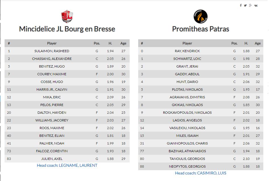 Για αρχή ας δούμε τα ρόστερ των δύο αντιπάλων. Το τζάμπολ έχει προγραμματιστεί για τις 21:00 (NS PRIME) στην EKINOX