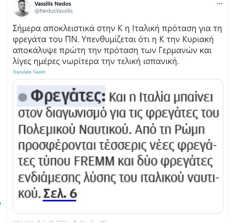 Σύμφωνα με το ρεπορτάζ της Καθημερινής οι Ιταλοί αναμένεται να καταθέσουν πρόταση στην Ελλάδα για τέσσερις φρεγάτες FREMM ενώ προσφέρουν και δύο πλοία ενδιάμεσης λύσης.
