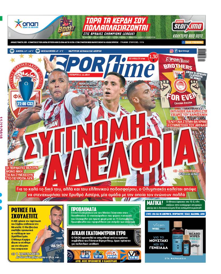 Μαζί με το σημερινό Sportime και η ειδική έκδοση «Brothers For Ever», ένα αφιέρωμα στην αδελφοποίηση Ολυμπιακού και Ερυθρού Αστέρα.