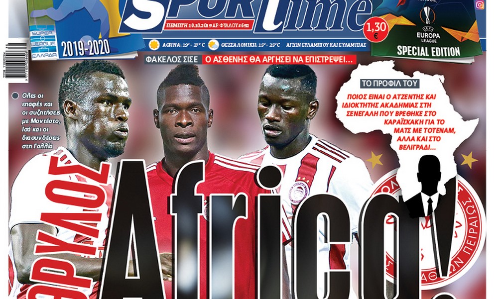 Διαβάστε σήμερα (10/10) τι αναφέρει το πρωτοσέλιδο του Sportime, που έχει σαν κεντρικό θέμα το «άρωμα» Αφρικής στο ρόστερ του Ολυμπιακού.
