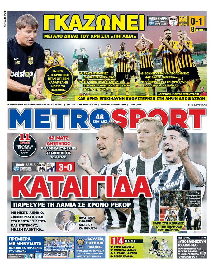 Πρωτοσέλιδα για τη Δευτέρα 21 Οκτωβρίου 2019