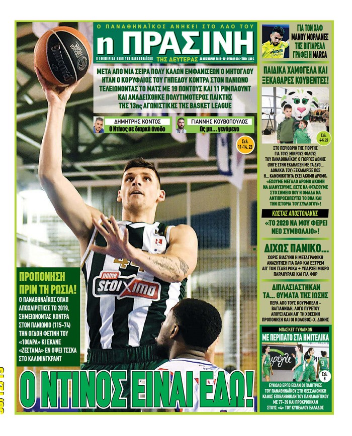 Πρωτοσέλιδα για τη Δευτέρα 30 Δεκεμβρίου 2019