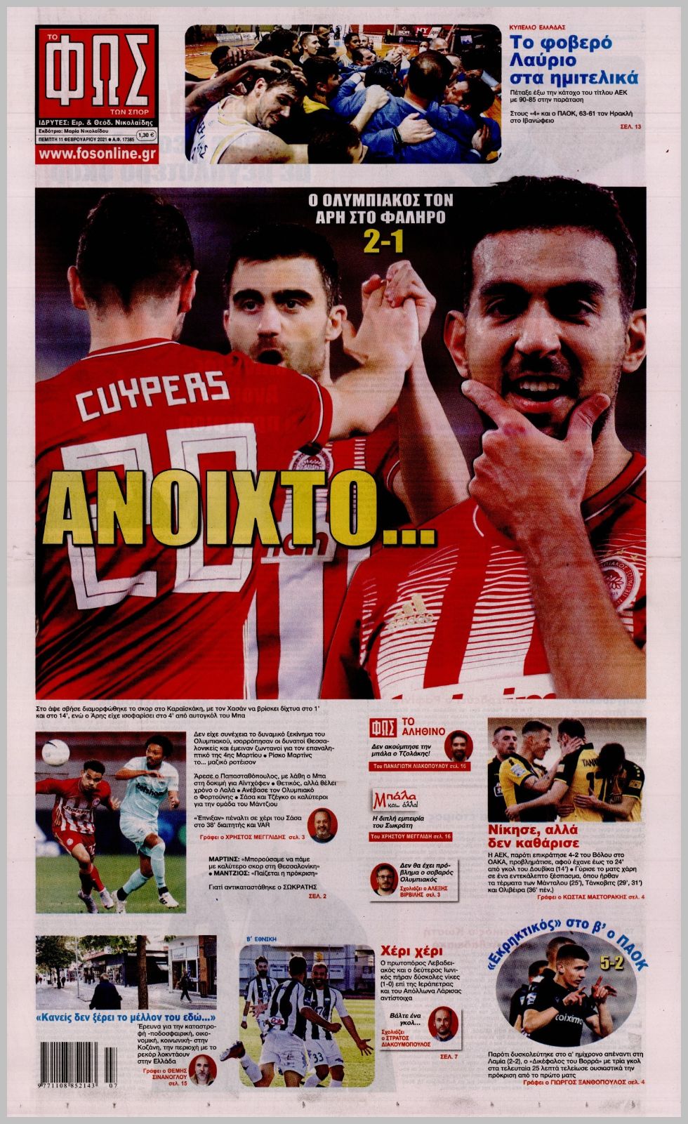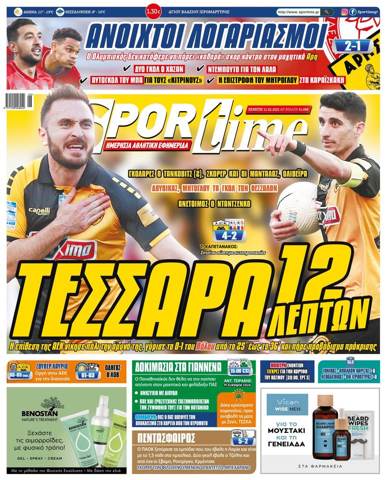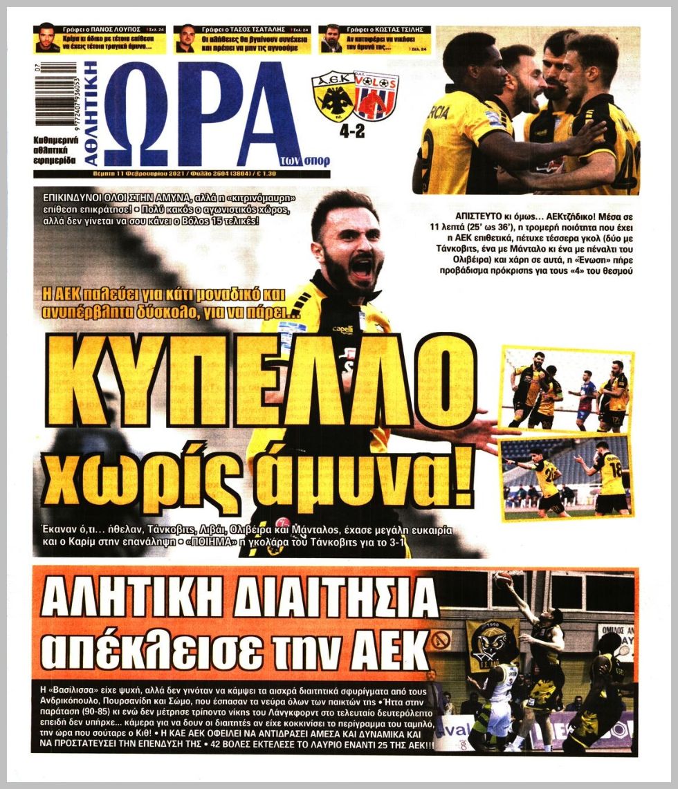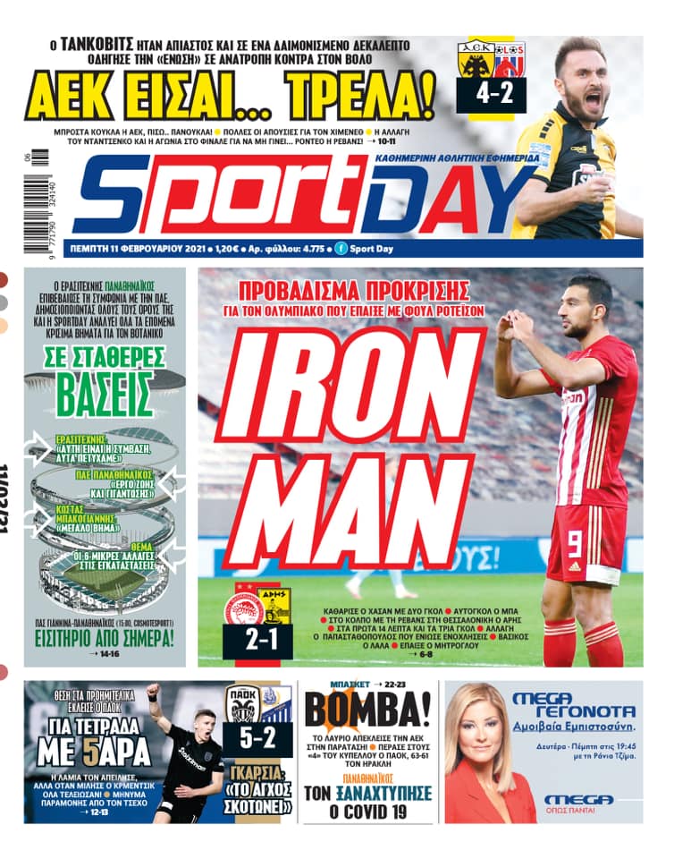 Πρωτοσέλιδα για την Πέμπτη 11 Φεβρουαρίου 2021: Τι αναφέρουν στη... βιτρίνα τους οι αθλητικές εφημερίδες σε Αθήνα και Θεσσαλονίκη.