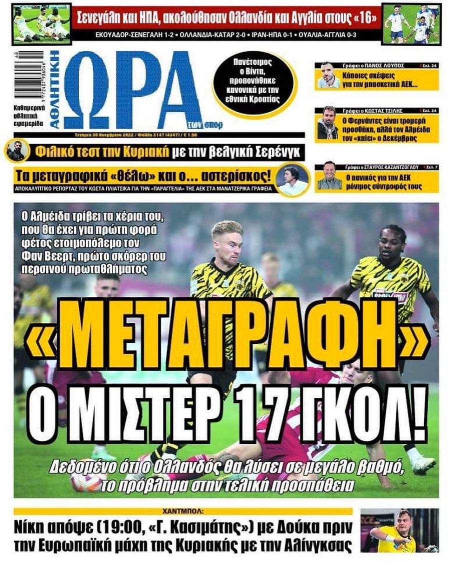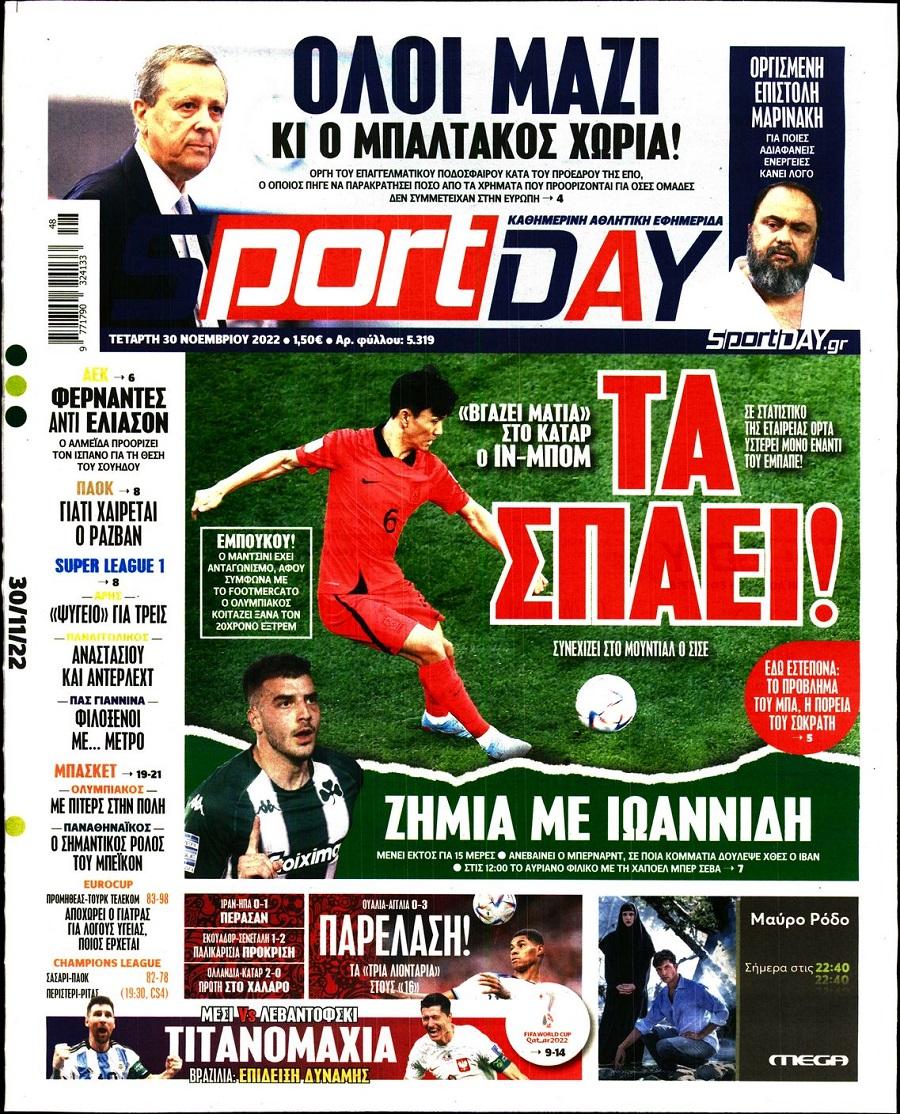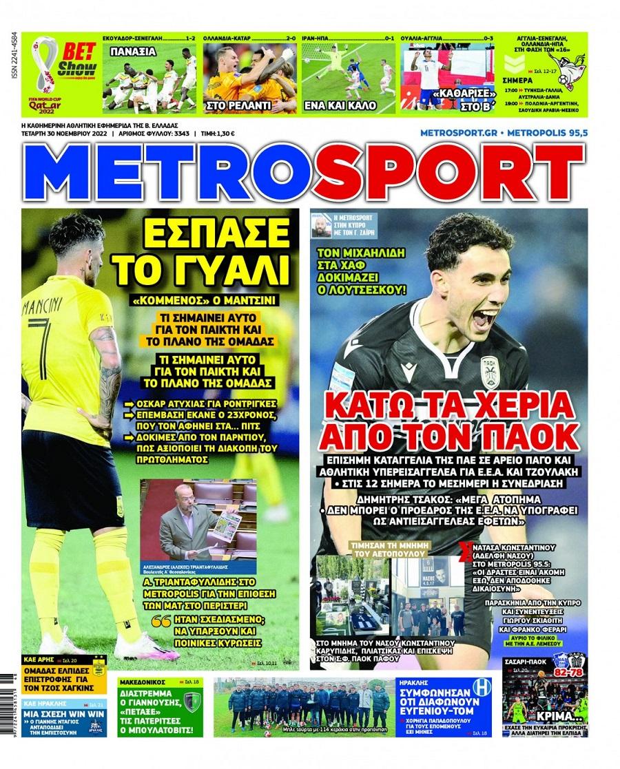 Πρωτοσέλιδα αθλητικών εφημερίδων για την Τετάρτη 30 Νοεμβρίου 2022. Δείτε αναλυτικά τι αναφέρουν στη… βιτρίνα τους οι εφημερίδες.