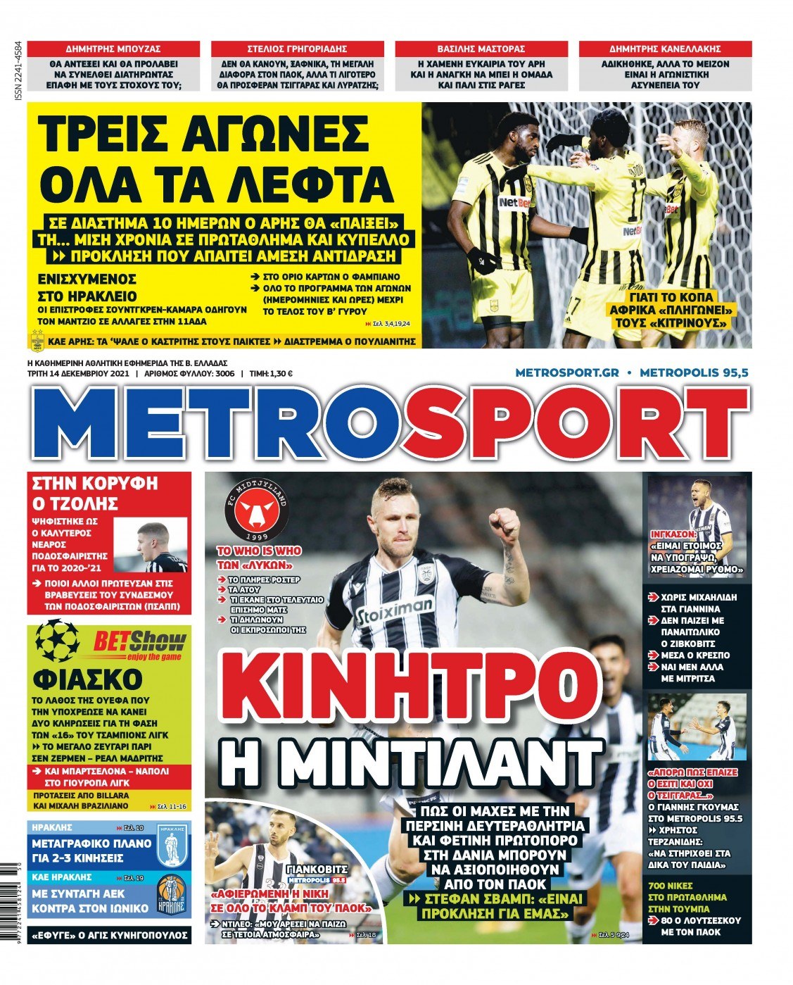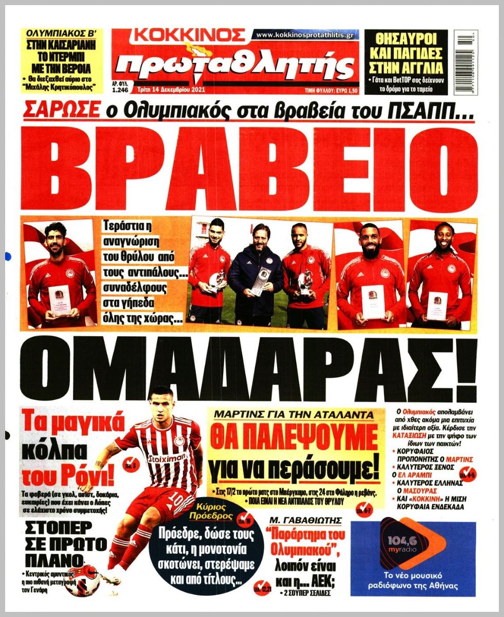 Πρωτοσέλιδα αθλητικών εφημερίδων για την Τρίτη 14 Δεκεμβρίου 2021. Τι αναφέρουν στη… βιτρίνα τους οι εφημερίδες σε Αθήνα και Θεσσαλονίκη.