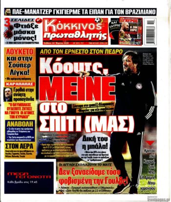 Πρωτοσέλιδα για το Σάββατο 14 Μαρτίου 2020