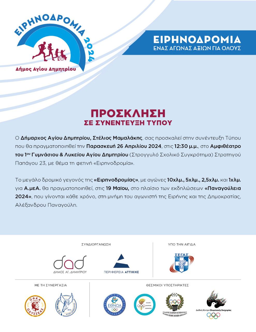 Συνέντευξη Τύπου του δημάρχου Αγ. Δημητρίου για την «Ειρηνοδρομία 2024»