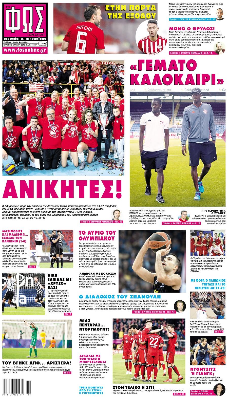 Τα πρωτοσέλιδα της Κυριακής 7 Απριλίου 2019