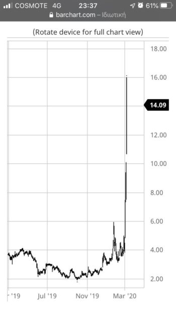 Μετά την ανακοίνωση της συγκεκριμένης εξέλιξης η μετοχή της έκανε… «ράλι», σημειώνοντας αύξηση 41,81% σε μία μόλις ημέρα και 229,21% τις τελευταίες πέντε ημέρες διαπραγμάτευσης της μετοχής της.