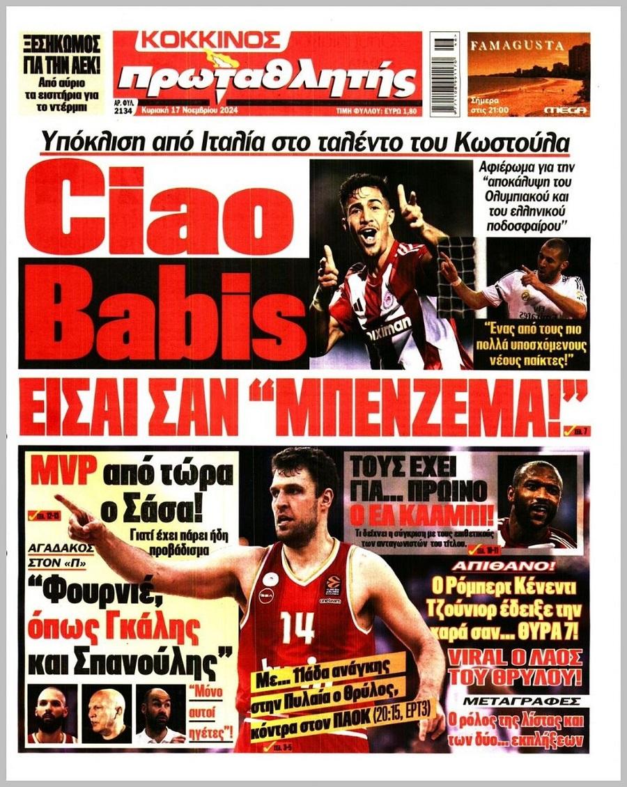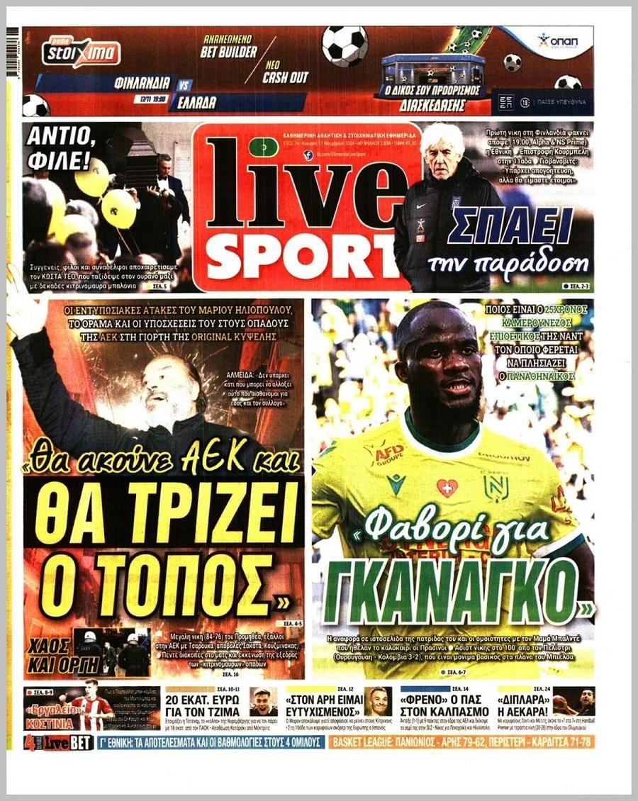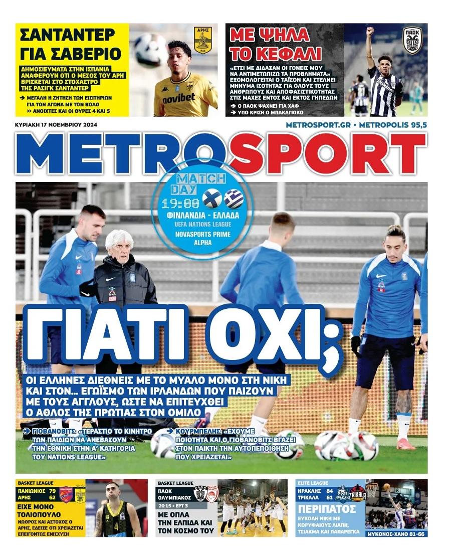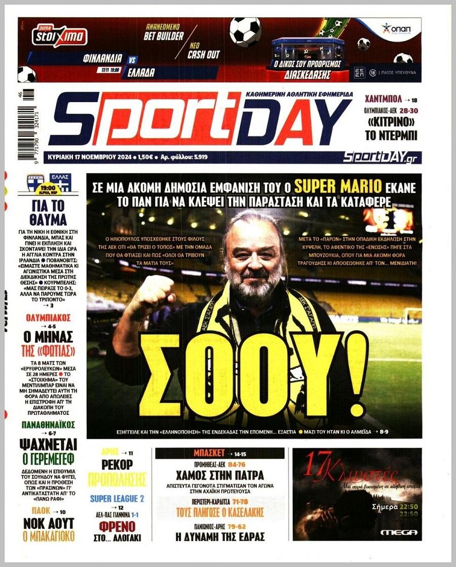 Πρωτοσέλιδα αθλητικών εφημερίδων για την Κυριακή 17 Νοεμβρίου 2024