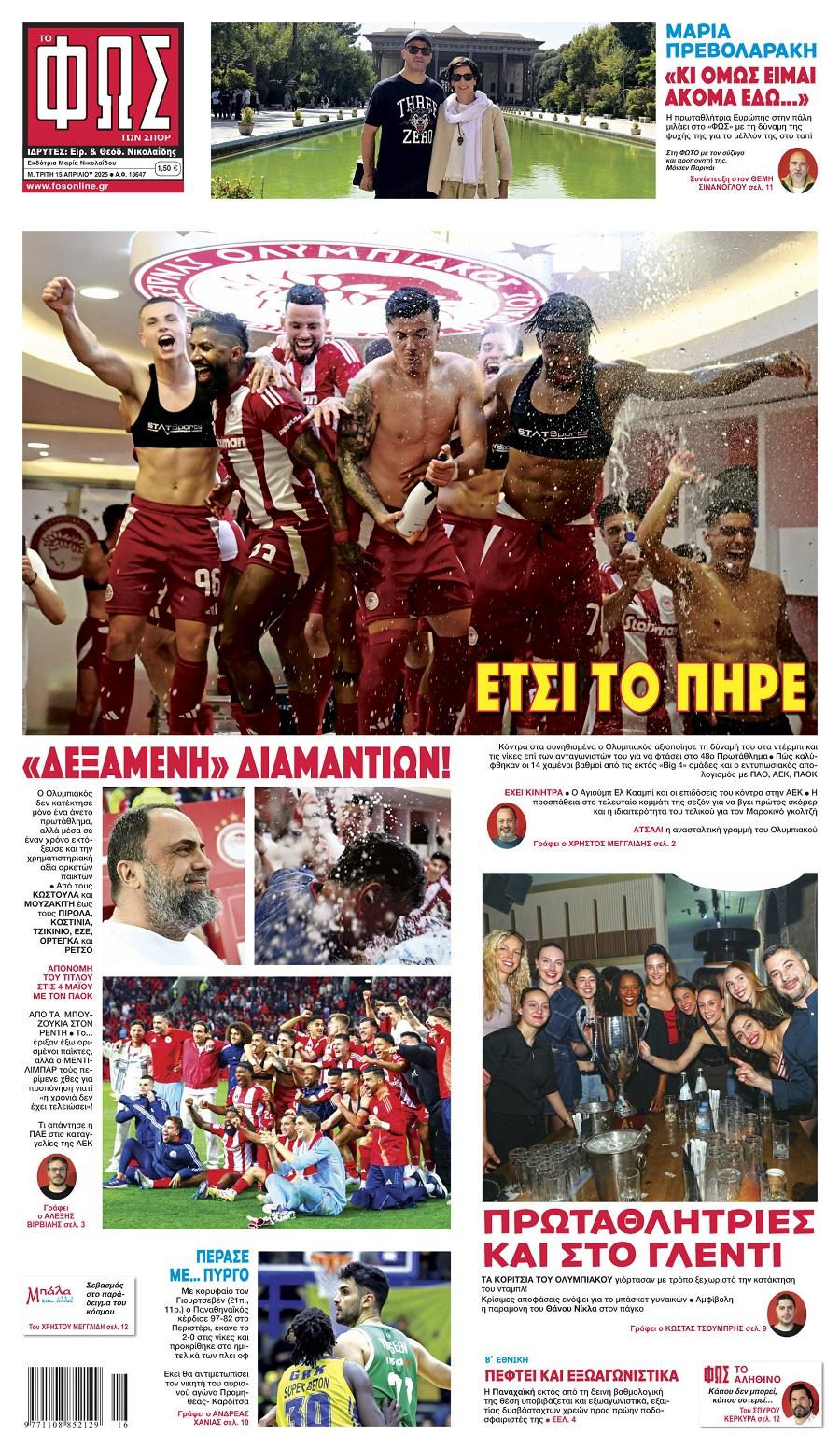 Πρωτοσέλιδα αθλητικών εφημερίδων για τη Μ. Τρίτη 15 Απριλίου 2025
