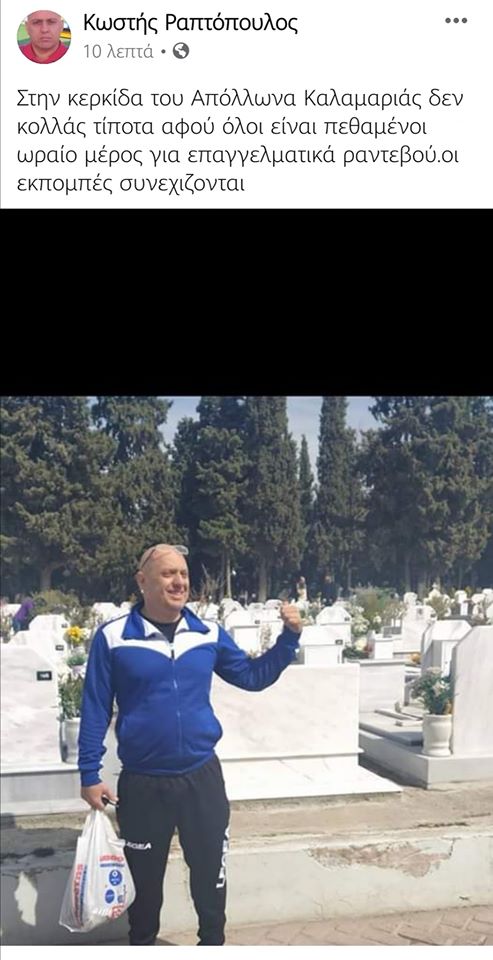 Μία φωτογραφία του, γυρίζοντας από ψώνια, σε νεκροταφείο, με ένα απαράδεκτο σχόλιο! Για τους φίλους του Απόλλωνα Καλαμαριάς.