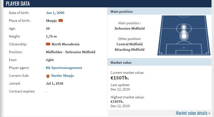 Αγωνιζόταν στην Βαρντάρ, είχε μία γεμάτη χρονιά πέρσι, ενώ είναι διεθνής με τα Σκόπια.