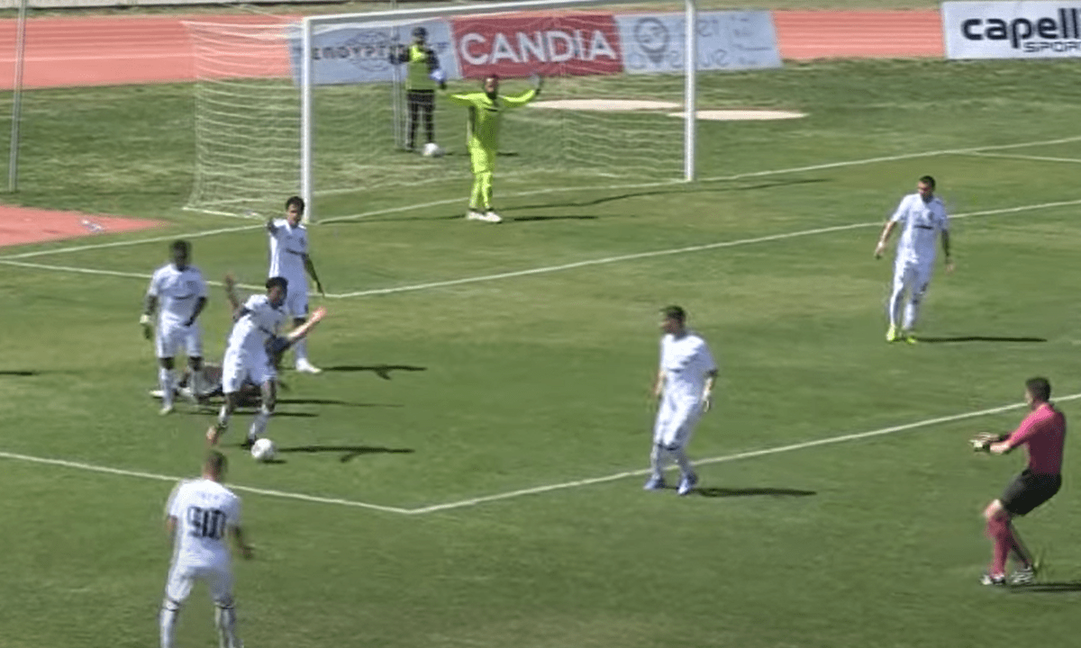 Καθαρή ανατροπή, όπως φαίνεται και στο βίντεο (0.45”), για την οποία όμως ο διαιτητής Μπακογιάννης (Αθηνών) είπε «παίζετε»!