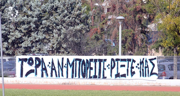 Συγκεκριμένα οι οπαδοί του Ηρακλή ανάρτησαν πανό το οποίο έγραφε: «Τώρα αν μπορείτε ρίξτε μας».
