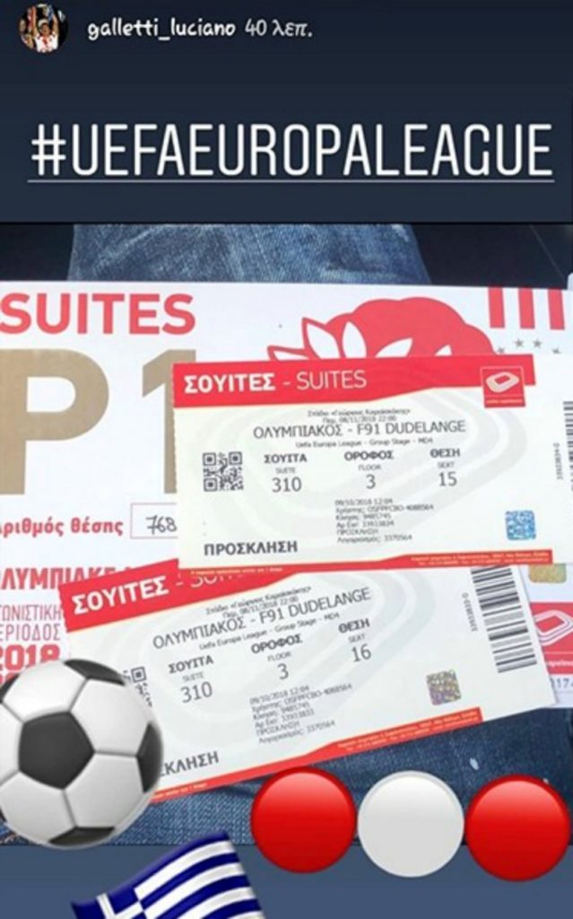 Ο Ολυμπιακός είναι στην καρδιά του Λουτσιάνο Γκαλέτι, που δεν χάνει ευκαιρία να είναι κοντά του. Έτσι ο Αργεντινός έκανε γνωστό πως βρίσκεται στο Καραϊσκάκη για να παρακολουθήσει το ματς με την Ντουντελάνζ.