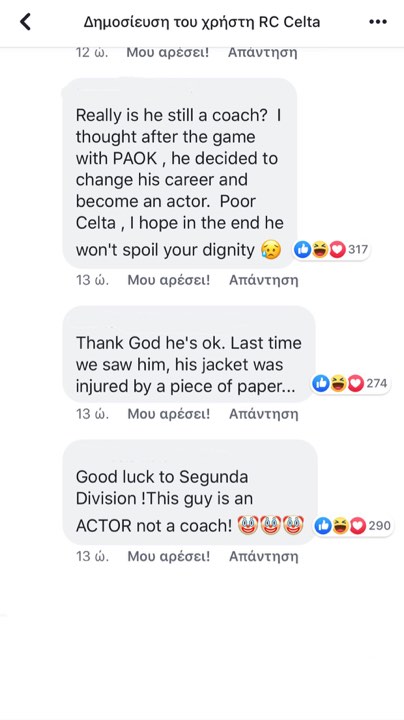 Πιο συγκεκριμένα, η ομάδα του Βίγκο επισημοποίησε την έναρξη της συνεργασίας της με τον άλλοτε προπονητή του Ολυμπιακού, όμως αυτό, που ακολούθησε μάλλον δεν το περίμεναν οι υπεύθυνοι των social media…