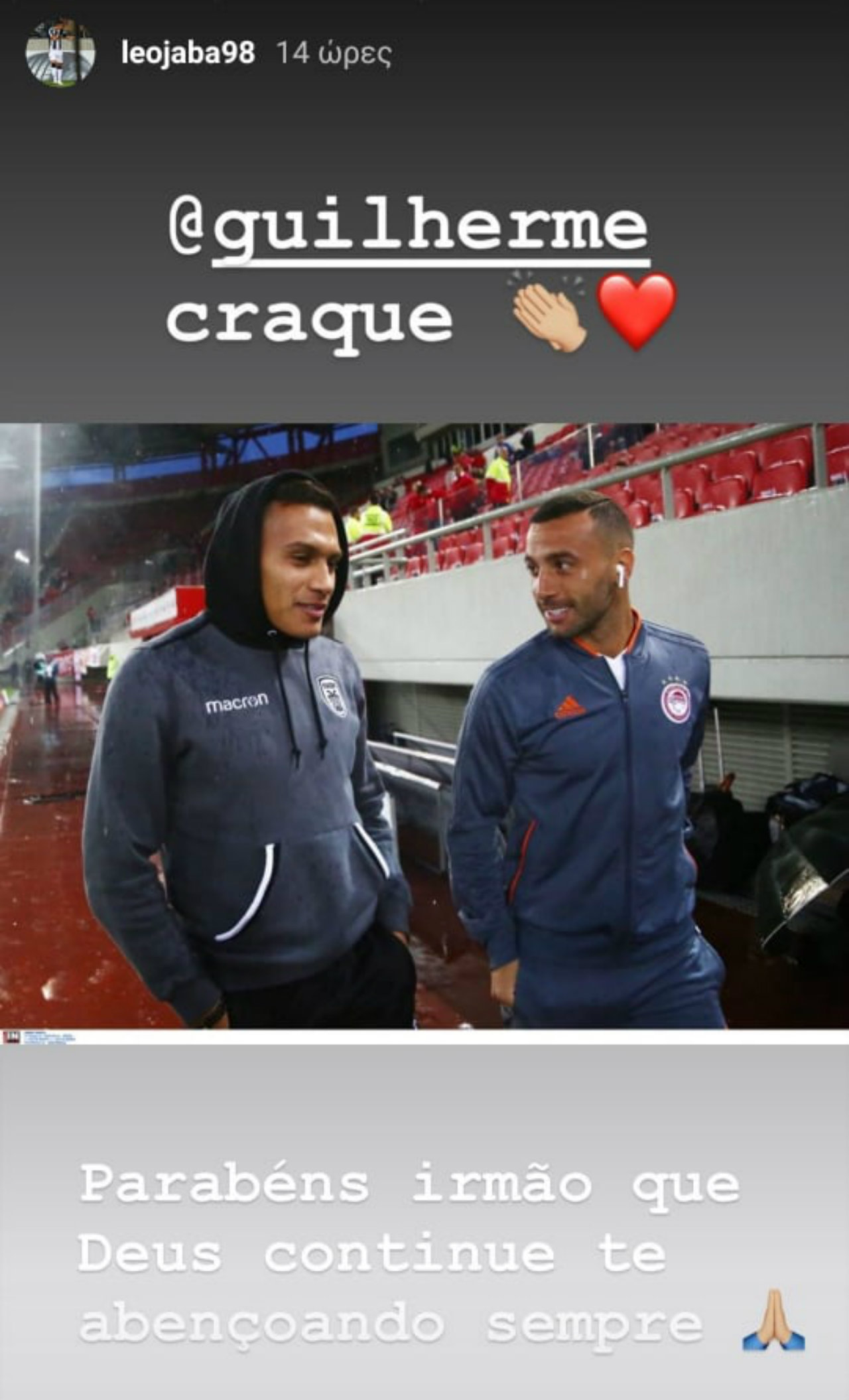 «Αδερφέ μου ελπίζω ο Θεός να συνεχίσει να σε ευλογεί πάντα» ήταν το μήνυμα του Βραζιλιάνου των πρωταθλητών Ελλάδας μέσω instagram.
