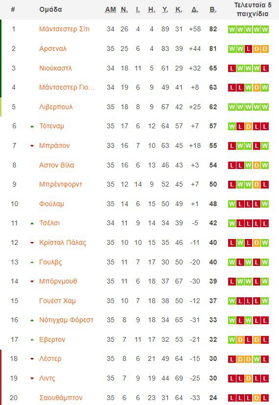 Τα αποτελέσματα της 35ης αγωνιστικής