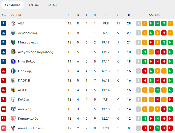 Πάνω που γκέλαραν οι Βοιωτοί στην Κοζάνη και είχαν την ευκαιρία οι Θεσσαλοί να πάνε στο +3 με παιχνίδι περισσότερο, στραβοπάτησαν και εκείνοι. Ήρθαν ισόπαλοι 1-1 εντός έδρας με την ΑΕΚ Β’.