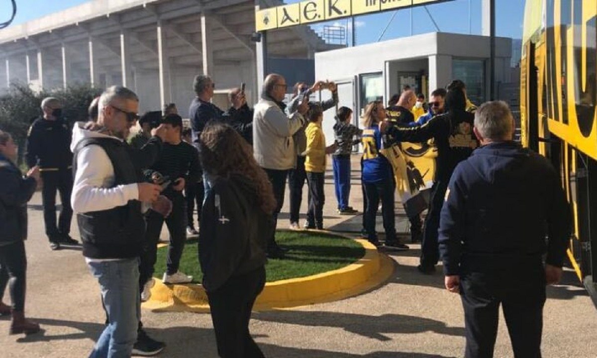 Φίλαθλοι της ΑΕΚ βρέθηκαν στα Σπάτα και εμψύχωσαν τους παίκτες της ενόψει του ντέρμπι με τον Ολυμπιακό.