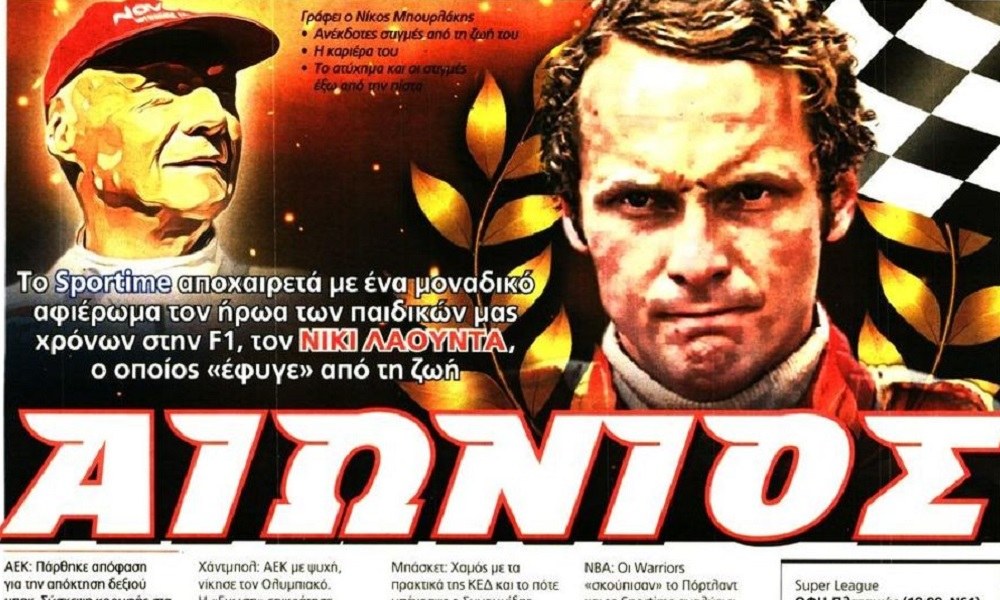 Διαβάστε τι αναφέρει σήμερα το πρωτοσέλιδο της έντυπης έκδοσης του Sportime μετά τον θάνατο του Νίκι Λάουντα.