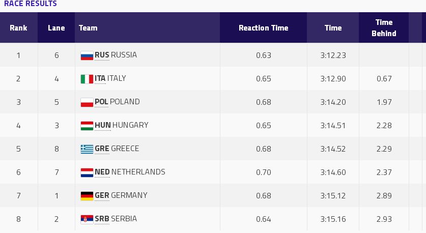 Πρώτη κατετάγη η ομάδα της Ρωσίας με 3:12.23.