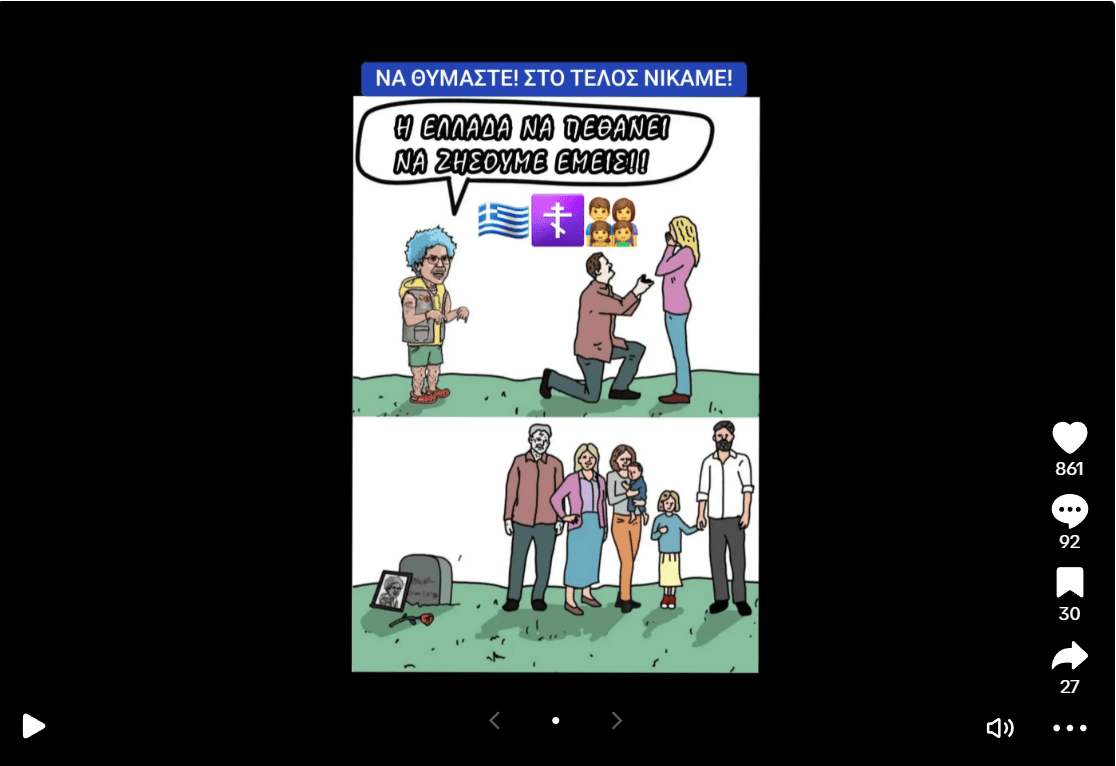 Σκίτσο στο TikTok «πετσοκόβει» όσους εκφράζουν ρητορική μίσους κατά της πατρίδας της οικογένειας και τις θρησκείας.