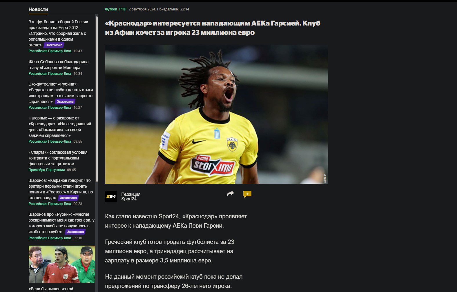 Προς το παρόν, η Κράσνονταρ ξεκαθαρίζεται ότι δεν έχει κάνει πρόταση επίσημη και παρακολουθεί στενά την υπόθεση του.