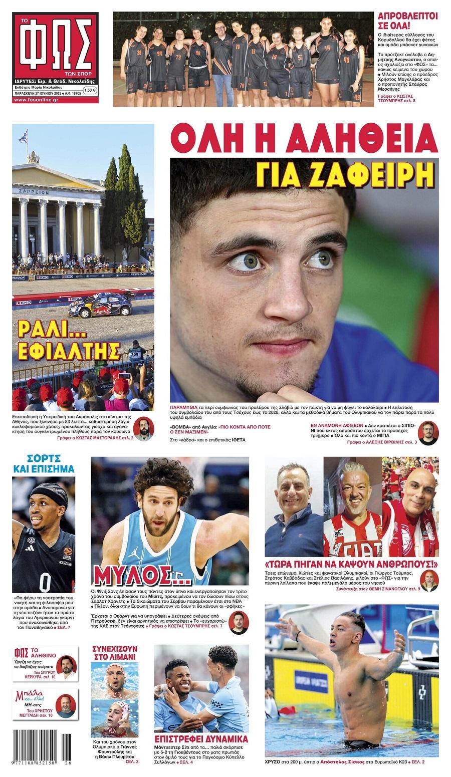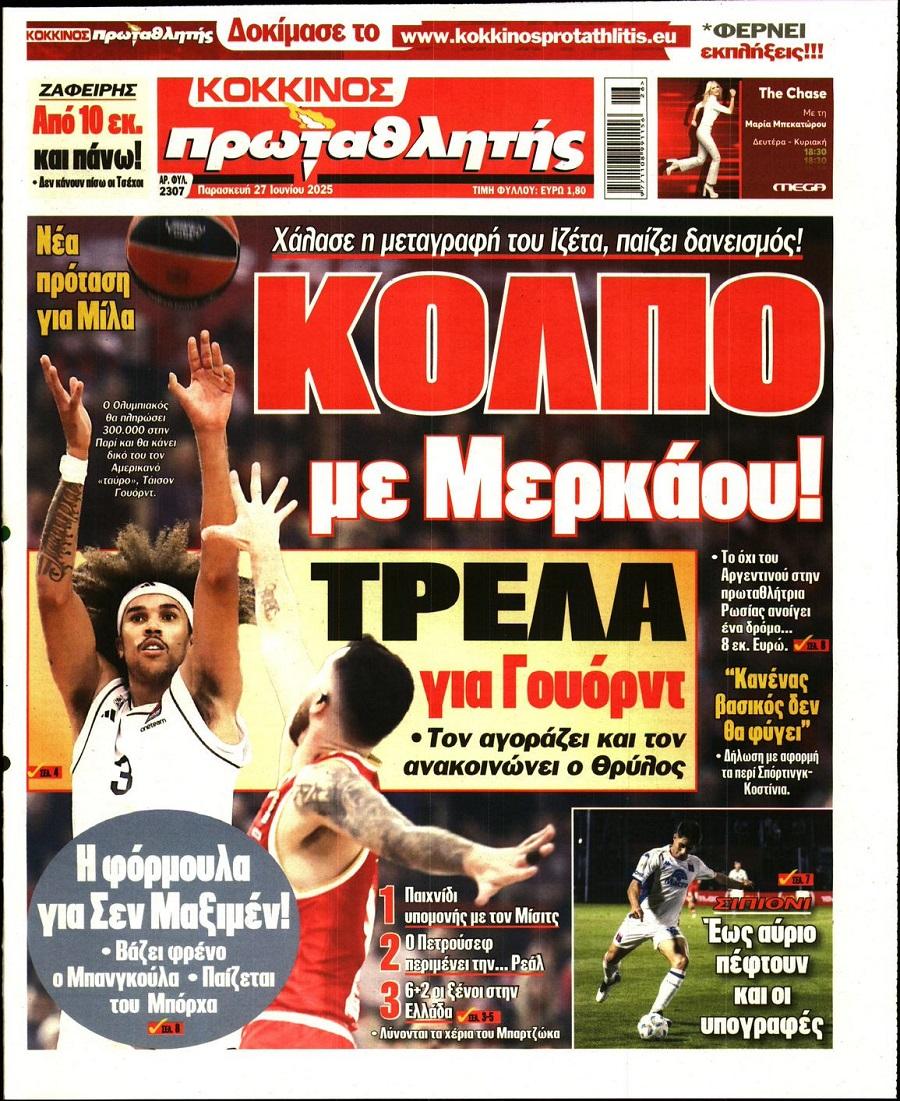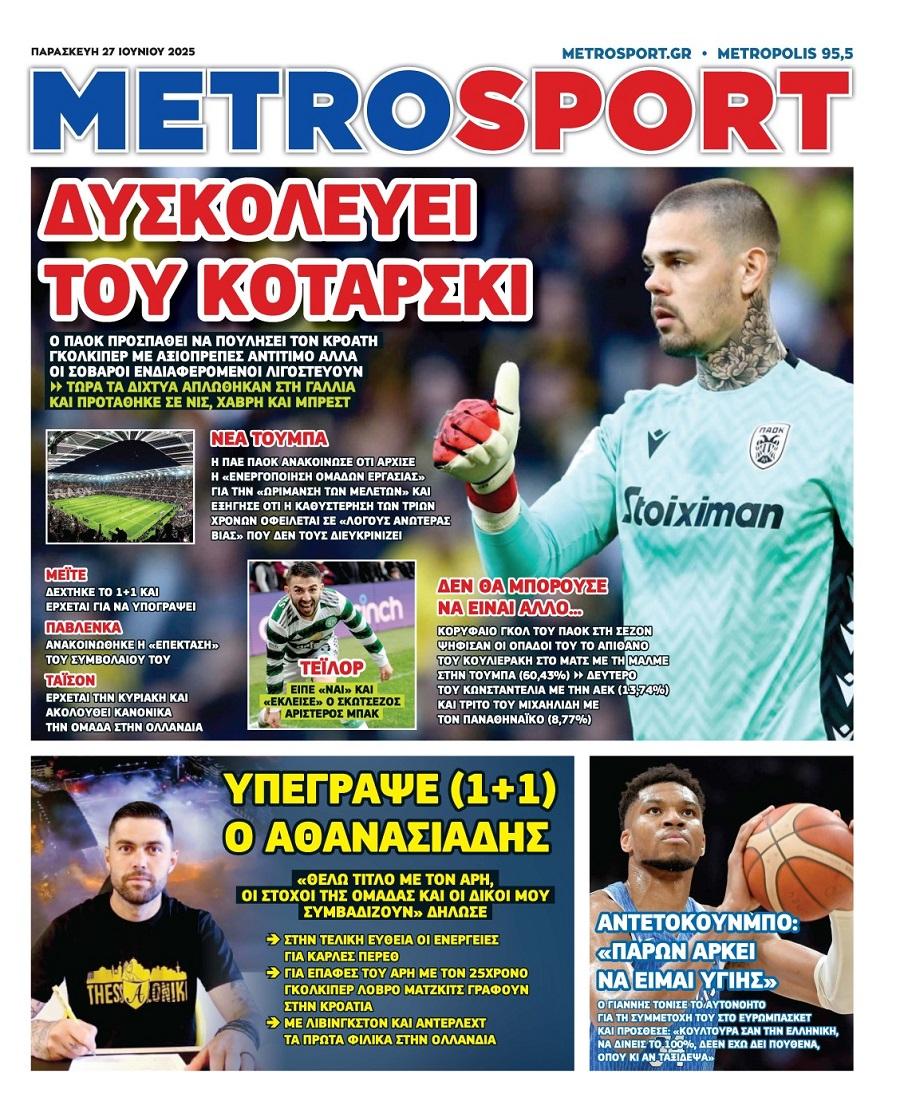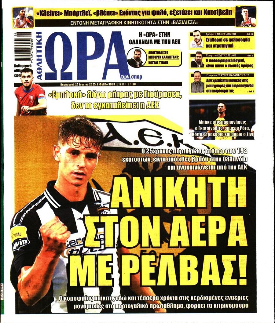 Πρωτοσέλιδα αθλητικών εφημερίδων για την Παρασκευή 27 Ιουνίου 2025
