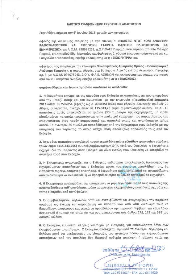 Αυτές τις απαιτήσεις, με το εξώδικο αυτό ενημερωθήκαμε πως τις εκχωρεί στην ΠΑΕ Παναθηναϊκός, γεννώντας ερωτήματα ως προς το τι συναλλαγές υπάρχουν μεταξύ ΣΚΑΪ και ΠΑΕ Παναθηναϊκός όλα αυτά τα χρόνια.