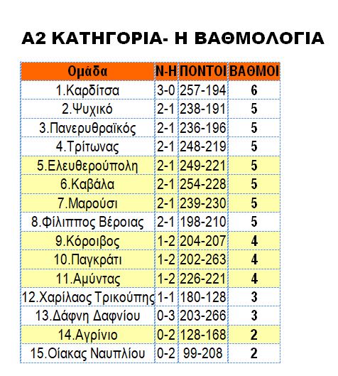 Α2- Τα φύλλα αγώνα