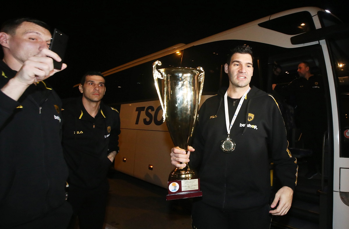 Η ΑΕΚ επέστρεψε θριαμβεύτρια από την Κρήτη, έχοντας μαζί στις αποσκευές της το Κύπελλο Ελλάδας. Οι φίλοι της «Ένωσης» βρέθηκαν το βράδυ της Κυριακής (16/2) στο αεροδρόμιο Ελ. Βενιζέλος για να υποδεχθούν την αποστολή.