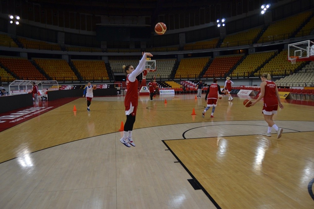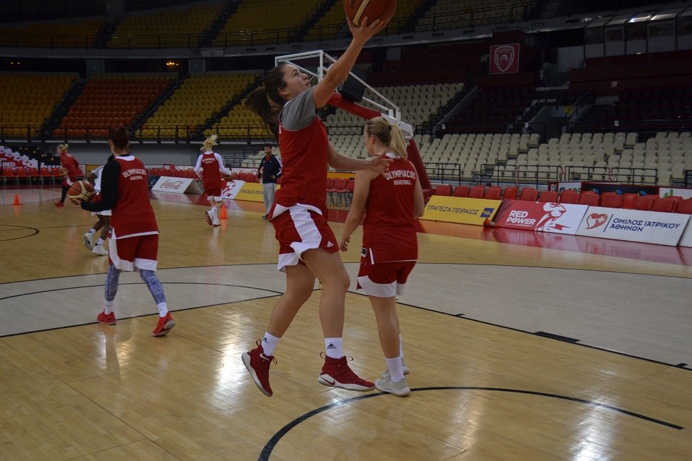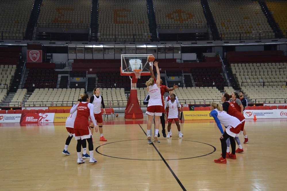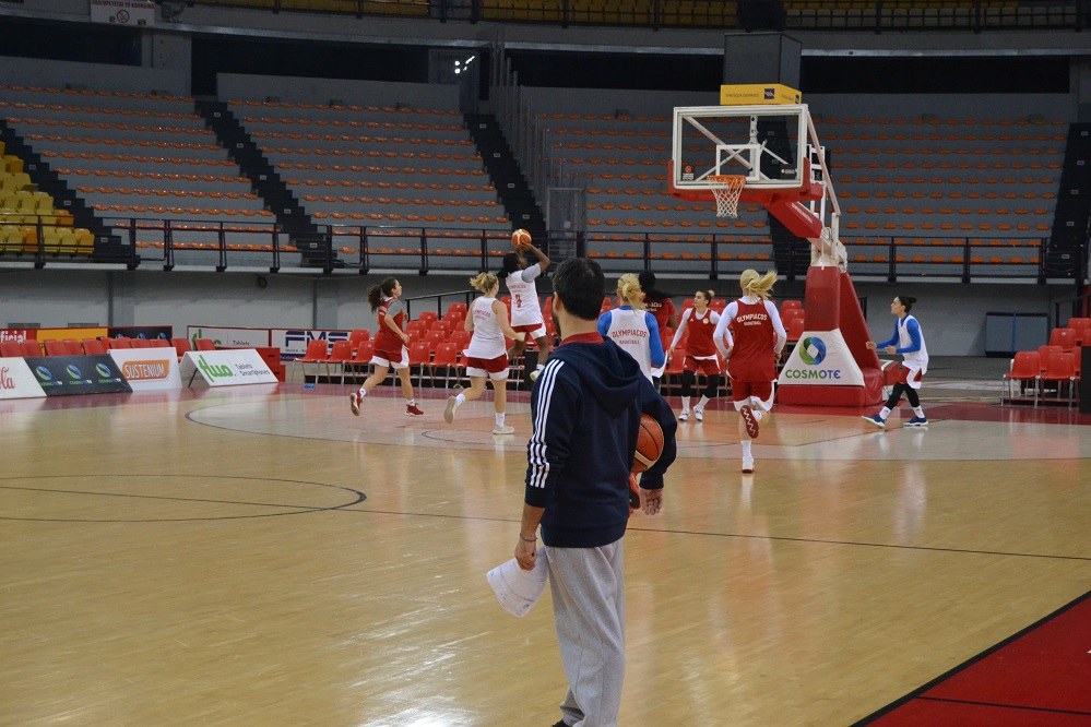 Οι αθλήτριες των «ερυθρόλευκων» προπονήθηκαν στο γήπεδο που θα γίνει η αναμέτρηση, στην κεντρική σάλα του Σταδίου «Ειρήνης και Φιλίας», εκεί όπου την Τετάρτη θα διεξαχθεί ο αγώνας για την Euroleague Γυναικών.