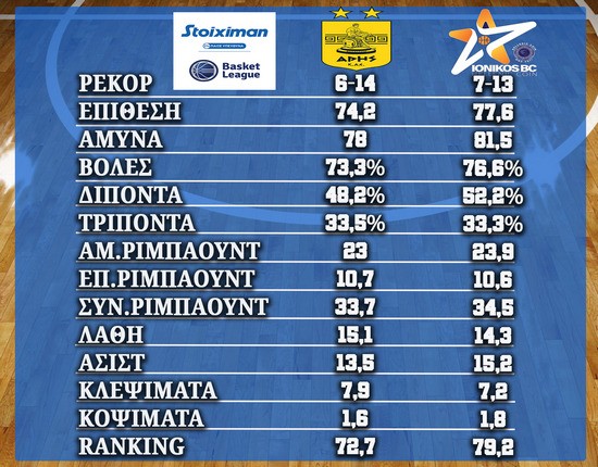 Άρης- Ιωνικός: Οι αριθμοί