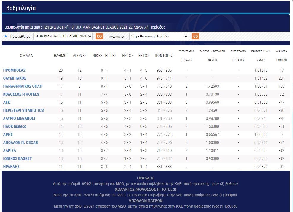 Με τον αγώνα του Απόλλωνα με τον Παναθηναϊκό στην Πάτρα θα ολοκληρωθεί η 12η αγωνιστική της Basket League που επέστρεψε μετά τη διακοπή. Οι πρώτοι αγώνες για το 2022 στην Basket League έφεραν κάποιες μεταβολές στη βαθμολογία. Βεβαίως η εικόνα που έχουμε με τα ρεπό και τις αναβολές αγώνων δε δίνει ακριβή εικόνα αλλά με βάση το...