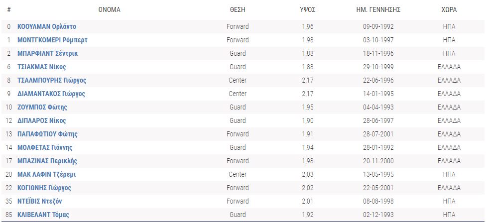 ΤΟ ΡΟΣΤΕΡ ΤΗΣ ΟΜΑΔΑΣ