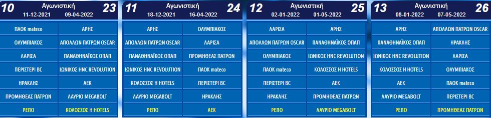 Δείτε το πρόγραμμα (σημείωση: Στις 12 και 13/2 θα γίνει το All Star Game)