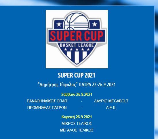 Επίσης για το Super Cup (25 και 26/9 στην Πάτρα), ο Παναθηναϊκός θα αντιμετωπίσει το Λαύριο και ο Προμηθέας την ΑΕΚ στα ημιτελικά. Σαν… επανάληψη του περσινού τελικού και μικρού τελικού αντίστοιχα.