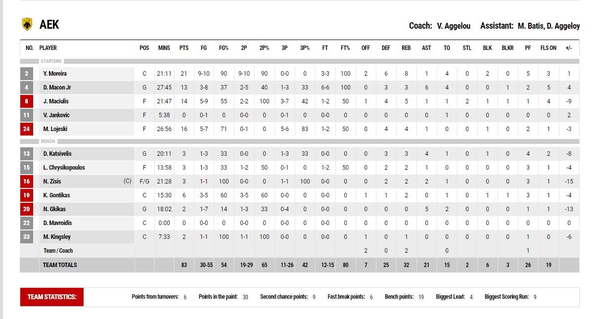 Νίκησε ο Παναθηναϊκός αλλά η ΑΕΚ ήταν και πάλι κάτι παραπάνω από ανταγωνιστική. Και η τελική διαφορά την αδικεί και σίγουρα δεν αντικατοπτρίζει την προσπάθειά της. Η διαφορά στην ποιότητα και στο ταλέντο ήταν καθοριστικά σημεία. Ο Παναθηναϊκός ξέφυγε ακόμα και με 16 πόντους αλλά η ΑΕΚ επέστρεψε στο -3 κι έγινε απειλητική. Πολύ καλή η προσπάθεια της «Ένωσης» που είναι πολύ διαβασμένη έχοντας δώσει ενδιαφέρον στη σειρά. Τρομερός ο Μήτογλου, κορυφαίος του αγώνα. Σπουδαίος επιθετικά ο Χεζόνια, αποκάλυψη ο Μπέντιλ. Ο Μορέιρα έκανε μεγάλη εμφάνιση, Λοτζέσκι, Ματσιούλις και Μέικον από κοντά.