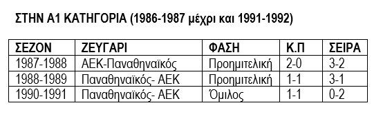 Υπάρχουν όμως και αναμετρήσεις από την εποχή της… Α1 Κατηγορίας. Κι αρχίζουμε από την περίοδο 1987-1988.