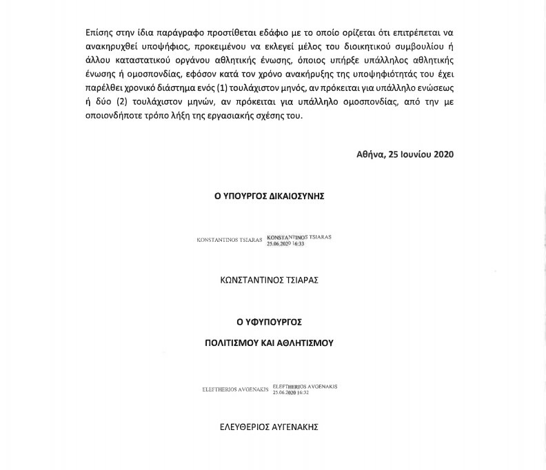 Η τροποποίηση διαφοροποίησε τον χρόνο που μεσολαβεί από τη στιγμή της παραίτησης, κάνοντας αυτό το διάστημα δύο μήνες. Κάτι που σημαίνει πως ο Παναγιώτης Φασούλας θα μπορέσει να συμμετέχει στις εκλογές της ΕΟΚ το Φθινόπωρο.