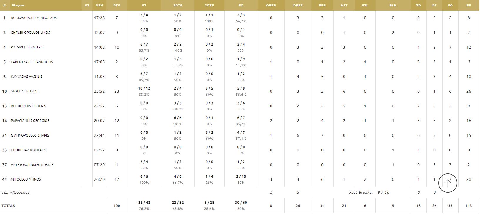 ΕΛΛΑΔΑ (Πιτίνο): Ρογκαβόπουλος 7, Χρυσικόπουλος, Κατσίβελης 10, Λαρεντζάκης 2, Καββαδάς 8, Σλούκας 23, Μποχωρίδης 6, Παπαγιάννης 12, Γιαννόπουλος 11, Χουγκάζ, Αντετοκούνμπο 4, Μήτογλου 17