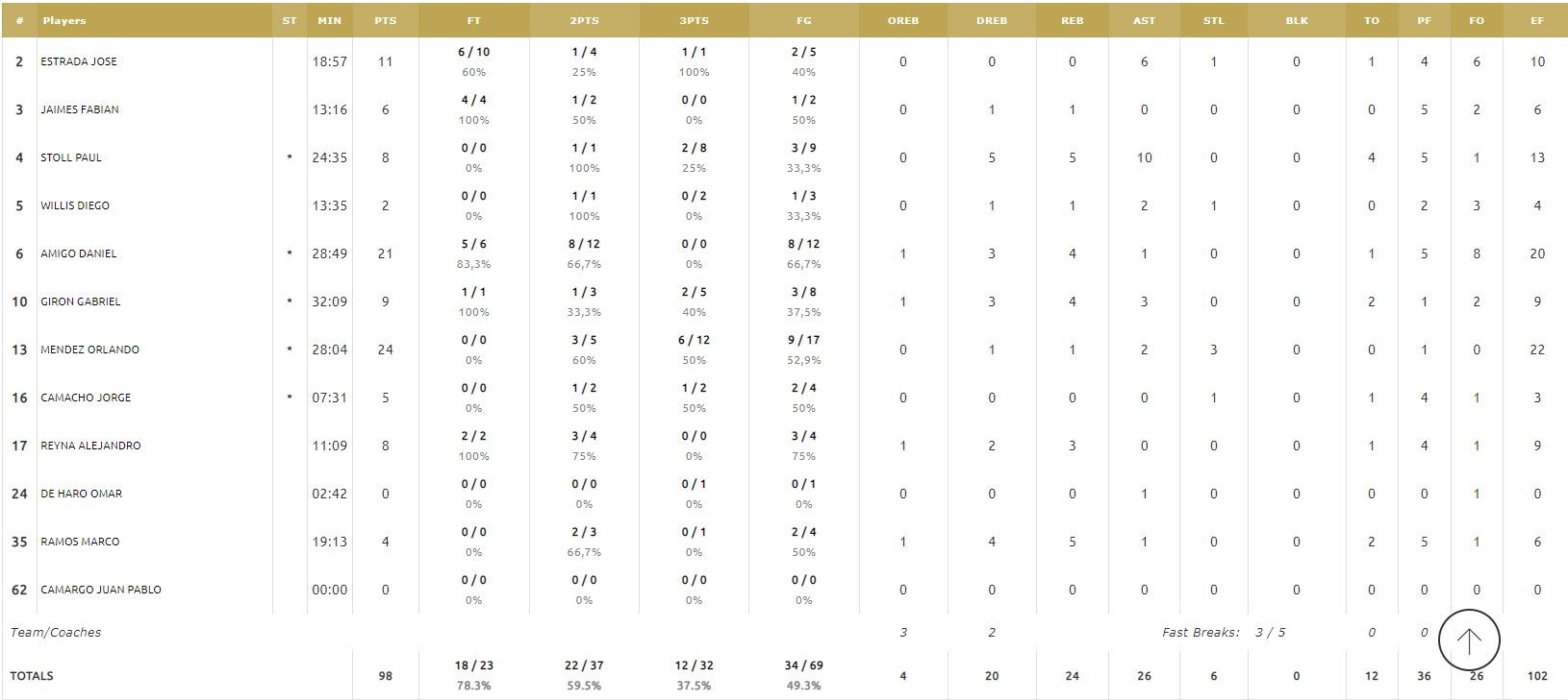 ΜΕΞΙΚΟ (Κιντέρος): Εστράδα 11, Χάιμες 6, Στολ 8, Γουίλις 2, Αμίγκο 21, Χιρόν 9, Μέντεζ 24, Καμάτσο 5, Ρέινα 8, Ντε Χάρο, Ράμος 4