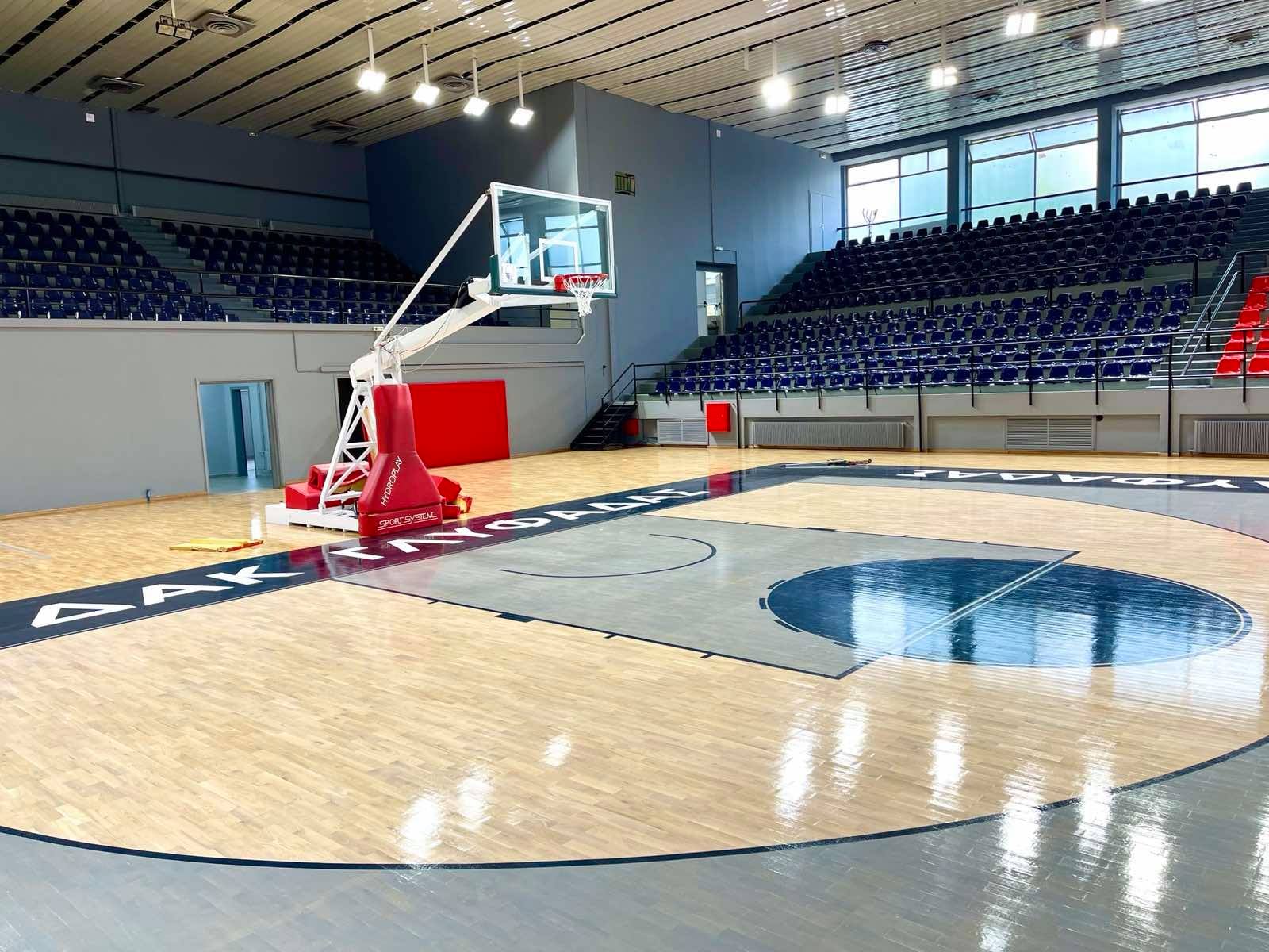 Όλα καινούργια: Το παρκέ, ο φωτισμός, τα αποδυτήρια, οι κερκίδες, ο μηχανολογικός εξοπλισμός. Μέχρι και το διχτάκι της μπασκέτας !