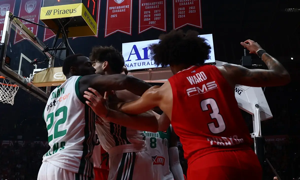 Ένταση για λίγα δευτερόλεπτα στο ΣΕΦ στο ντέρμπι Ολυμπιακού και Παναθηναϊκού για τη Euroleague. Πρωταγωνιστές της φάσης ήταν ο Χουάντσο Ερναγκόμεθ και ο Τάισον Γουόρντ σε μια στιγμή που ανέβασε την ένταση στο παρκέ.