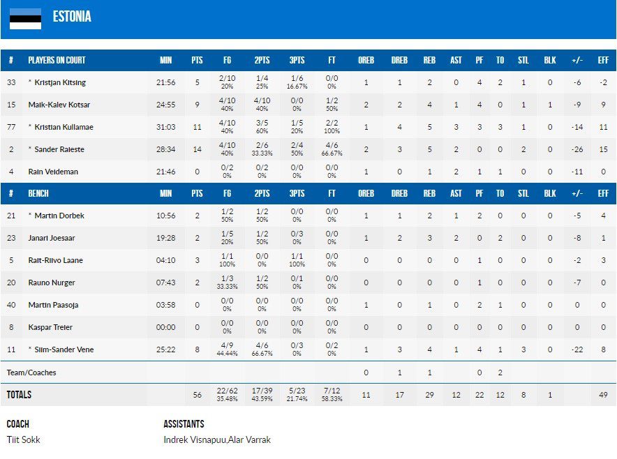Στο τρίτο δεκάλεπτο οι Γκίκας και Βασιλόπουλος έδωσαν διψήφιο προβάδισμα στη «γαλανόλευκη» (40-29). Οι Εσθονοί προσπάθησαν να βρουν λύσεις και μείωσαν σε 34-40. Όμως, οι σταθεροί Μήτογλου, Βασιλόπουλος και Κατσίβελης, αλλά και ο Θανάσης Αντετοκούνμπο στην τέταρτη περίοδο, «έσβησαν» τις ελπίδες στην ομάδα του Τιτ Σοκ για την ανατροπή.